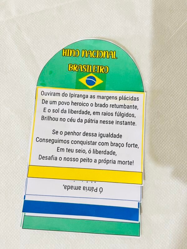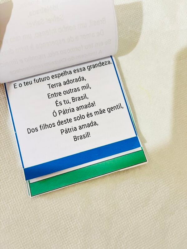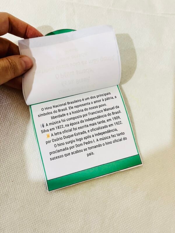 O Flipbook do Hino Nacional é um recurso prático e encantador para trabalhar o hino de forma organizada, visual e pedagógica. Cada página traz um trecho, facilitando a leitura, a compreensão e a memorização.